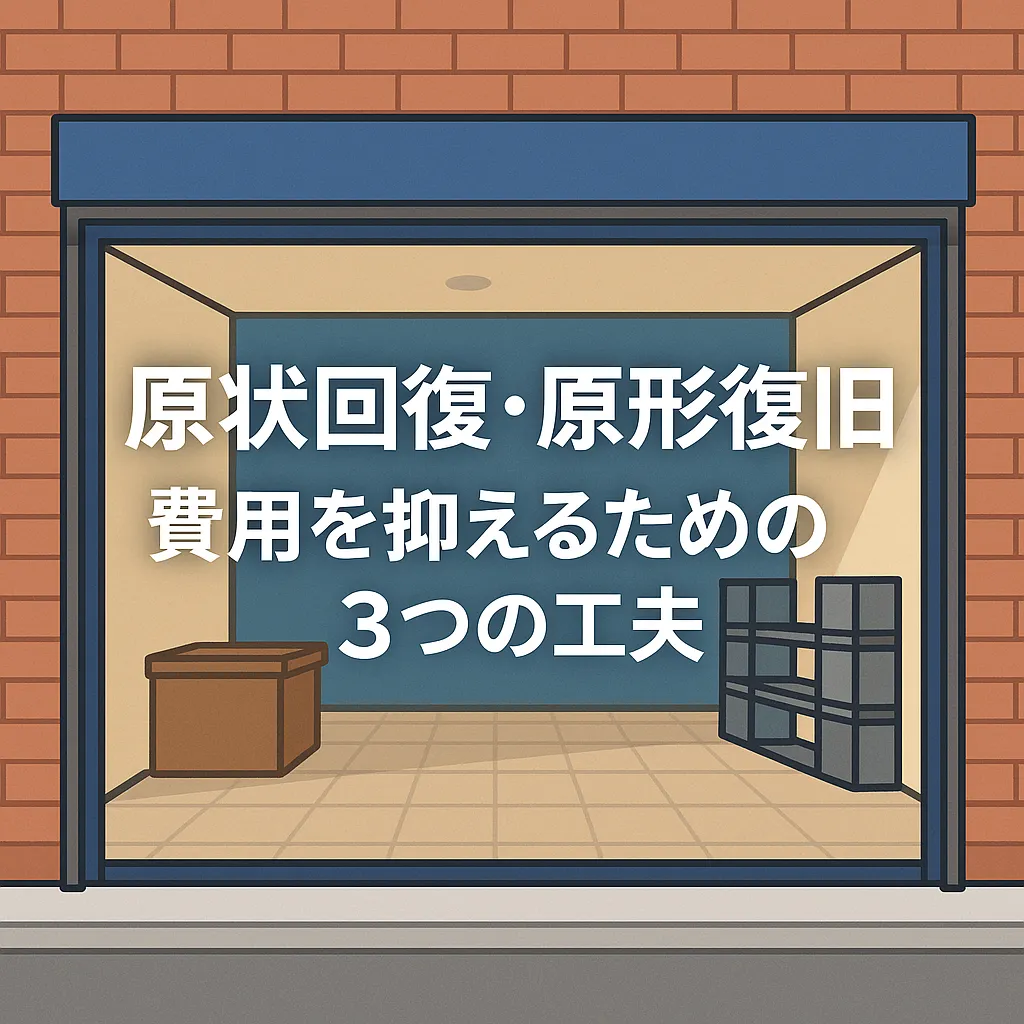 店舗退去時の原状回復・原形復旧工事|費用を抑えるための3つの工夫 店舗を退去する際には、原状回復(原形復旧/原型復旧とも呼ばれますが実務上は同義)が必要です。しかし、工事の範囲や方法によっては高額な費用がかかることもあります。そこで今回は、店舗退去時の原…