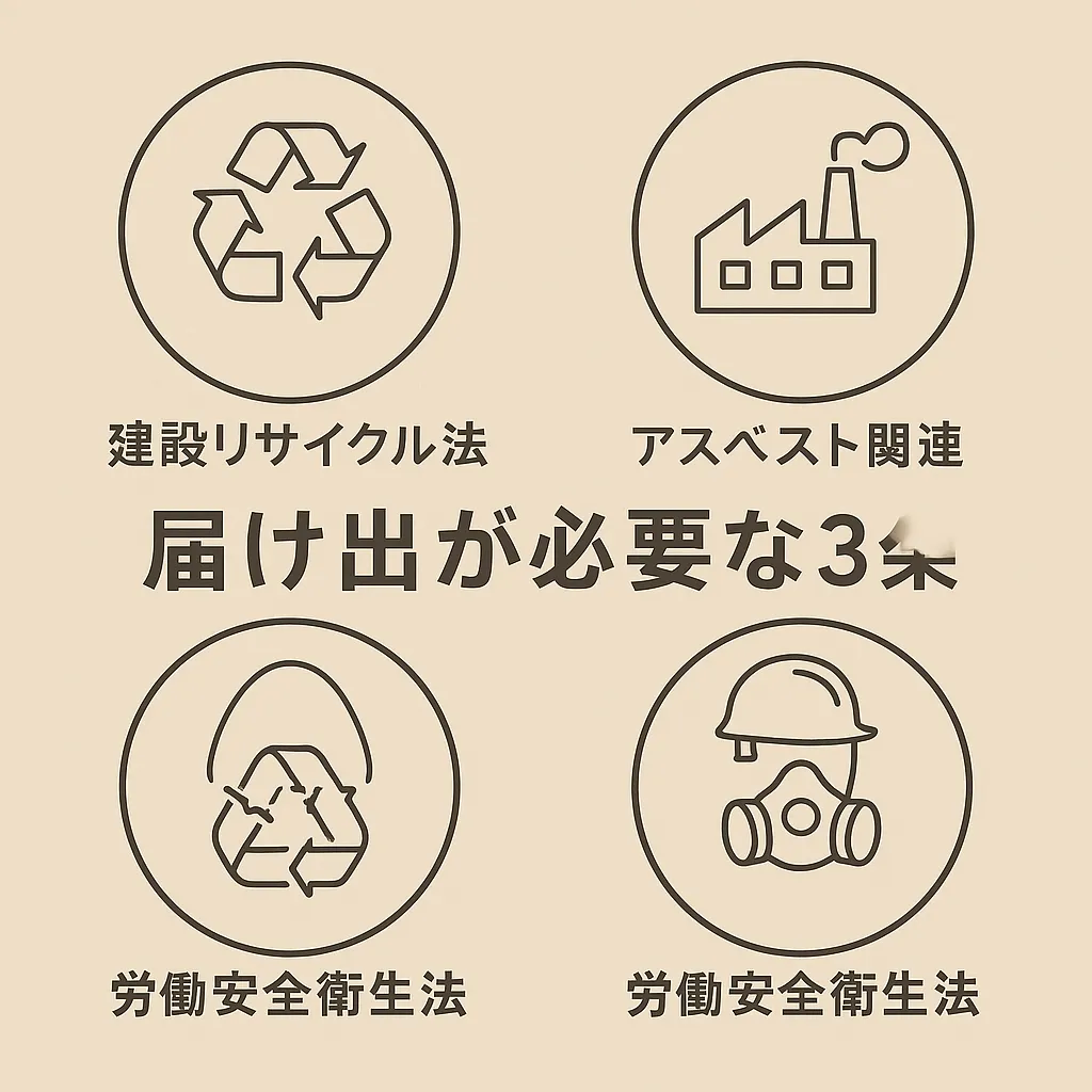 解体前に確認すべき3つの主要法令とは